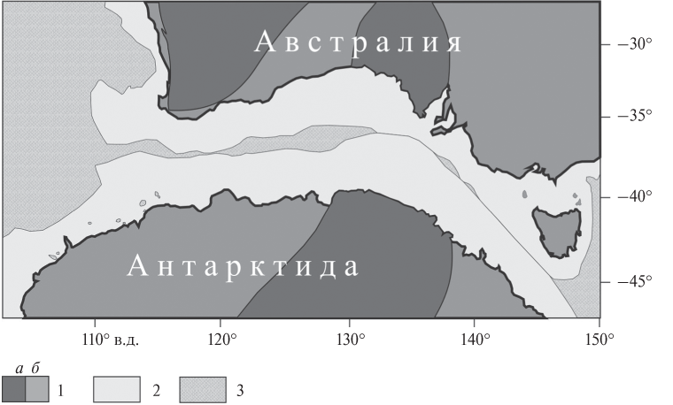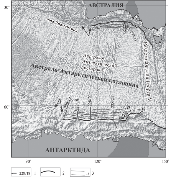 Таким образом, геолого-геофизические исследования позволили выявить зональные особенности строения земной коры с ее характерными деформациями на сопряженных континентальных окраинах Австралии и Антарктиды и древних сегментах Австрало-Антарктической котловины [Sayers et al., 2001; Direen et al., 2011; Лейченков и др., 2015; Gillard et al., 2015].