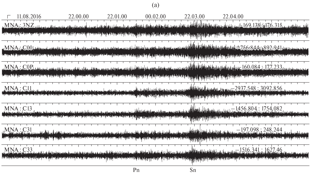 Для выделения афтершоков и их локации использовались записи следующих станций: временной сейсмической группы ИДГ РАН – RDON (Ростов‑Дон, Россия), станции KBZ (Хабаз, Кавказ, Россия) и двух сейсмических групп, входящих в Международную сеть IMS CTBTO – AKASG (Малин, Украина), BRTR (Бельбаши, Турция), и сейсмической группы MHVAR (Михнево, ИДГ РАН, Россия), расположенных на расстояниях от 3.28° до 7.96° (табл. 2).