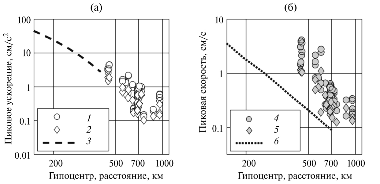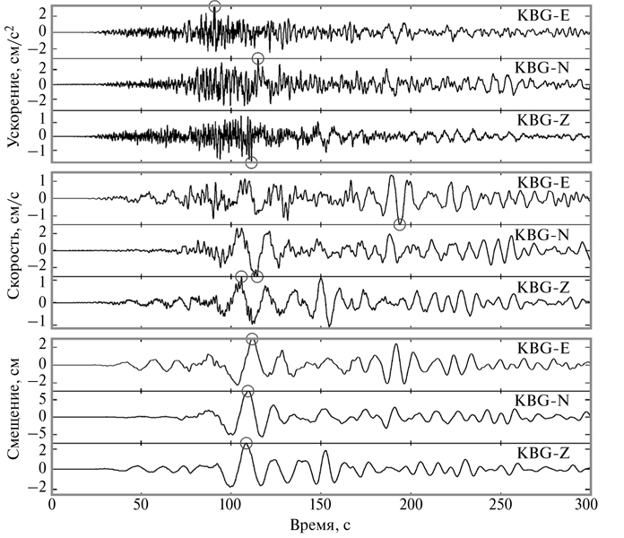 Для обработки БАЗ, его форшоков и афтершоков в региональном информационно-обрабатывающем центре (РИОЦ) «Петропавловск» были использованы записи сейсмических станций, которые расположены на п-ве Камчатка, Дальнем Востоке России и территориях сопредельных государств и доступны в РИОЦ в режиме реального времени (рис. 4). 78 из них входят в Камчатскую региональную сеть [Чебров и др., 2013; Чебров и др., 2017а]. Ближайшей к эпицентру БАЗ является станция «Беринг» (BKI) на о. Беринга (эпицентральное расстояние ∆ ~ 200 км).