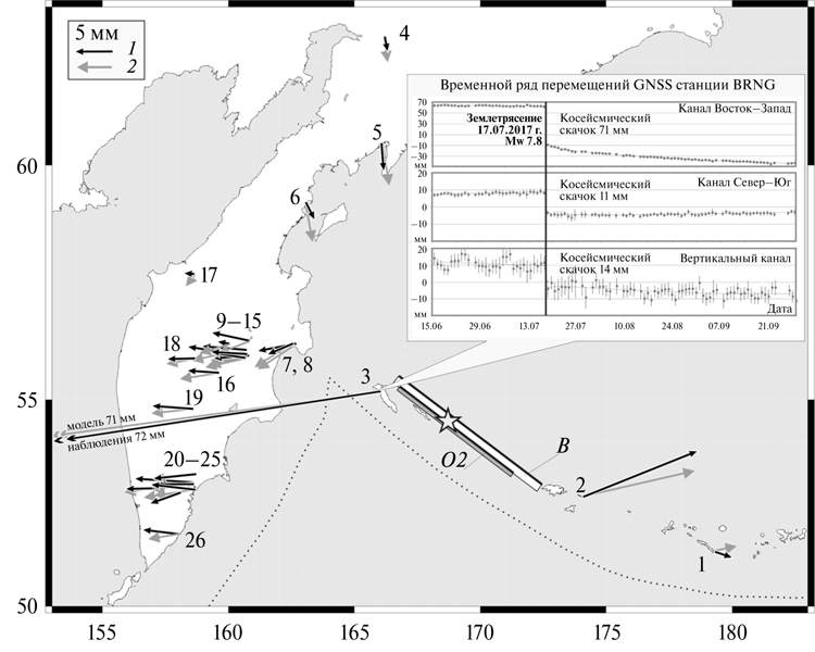 [12] В работе [Lay et al., 2017] также использованы GNSS-данные станции BRNG, входящей в сеть GNSS-станций КФ ФИЦ ЕГС РАН.