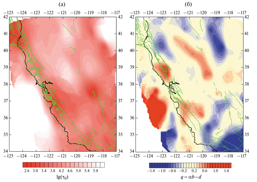 В соответствии с (3), параметр q и величина τ0 рассматриваются нами как физические параметры цикла разрушения. Мы использовали для параметра q англоязычное название q-value, по аналогии с названием b-value для параметра Гутенберга–Рихтера [Смирнов, 2003].