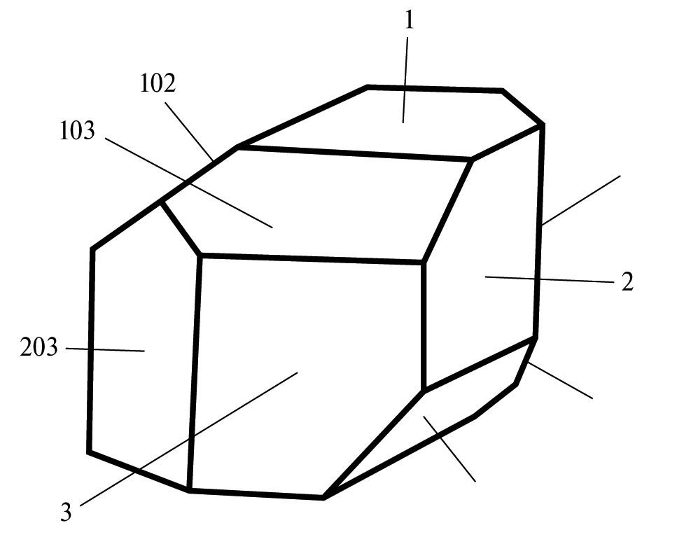 После начального этапа определения пространственной направленности двух взаимноперпендикулярных плоскостей симметрии, необходимо изготовить образец в форме неправильного додекаэдра, рис. 1. Направления 1, 2, 3 должны проходить через эти взаимно перпендикулярные плоскости. Они перпендикулярны основным плоскостям додекаэдра. Направления 102, 103, 203 перпендикулярны дополнительным плоскостям. Через все эти плоскости выполняются измерения фазовых скоростей продольных и поперечных волн. Совместно со значением плотности, измеренные величины скоростей необходимы и достаточны для определения полного набора констант упругости ортотропной среды, приведенной в матрице (5) [Горбацевич, 2002]. Соотношения в матрице (5) между константами упругости позволяют установить ту или иную степень анизотропии твердого тела.