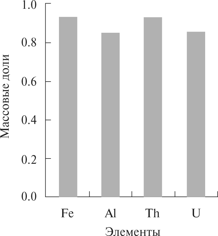 Рис. 3. Доли элементов в поверхностных водах Карелии, представленные наночастицами. Усредненные данные для водосборов, сложенных гранитными и основными породами (Vasyukova et al., 2010).
