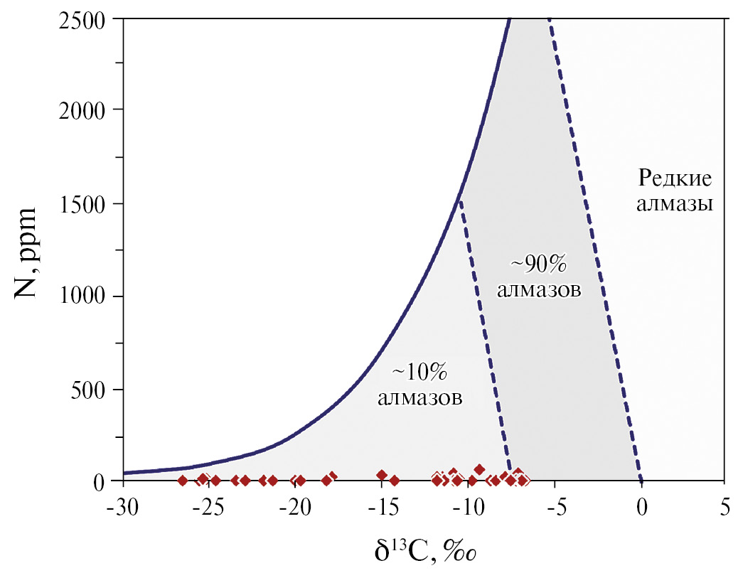 Природные алмазы предоставляют собой уникальный, наиболее глубинный геологический материал, доступный для научных исследований и на протяжение многих лет используются для решения вопросов, связанных с пониманием природы мантии и химических процессов в глубинных зонах Земли. Одним из ключевых показателей происхождения алмазов является минералогия и состав захваченных ими включений, большинство из которых указывают на образование алмазов преимущественно в ультрамафических (перидотитовых ― Р-тип) и мафических (эклогитовых ― Е-тип) субстратах в основании литосферной мантии древних кратонов (Соболев, 1974; Meyer, 1987; Harris, 1992). Предполагается также, что небольшая доля (<5%) алмазов образовалась при гораздо более высоких давлениях на глубинах переходной зоны верхней мантии (>410 км) или даже в нижней мантии (>660 км) (Harte et al., 1999; Stachel et al., 2005; Walter et al., 2011; Kaminsky, 2012). При этом отмечается, что образование алмазов в сублитосферной верхней мантии и переходной зоне в основном связано с глубоко субдуцированными мафическими породами океанической литосферы, а не с ультрамифическими субстратами примитивной мантии, которые являются доминирующими для образования алмазов в нижней мантии (Harte, 2010).