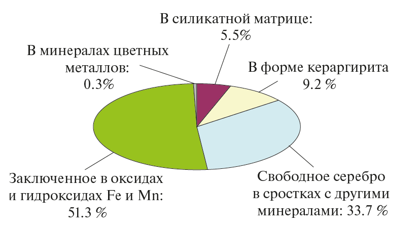 Фиг. 7. Рациональный анализ серебра, технологическая проба, участок Теплый (лаборатория технологии обогащения руд ЦНИГРИ).