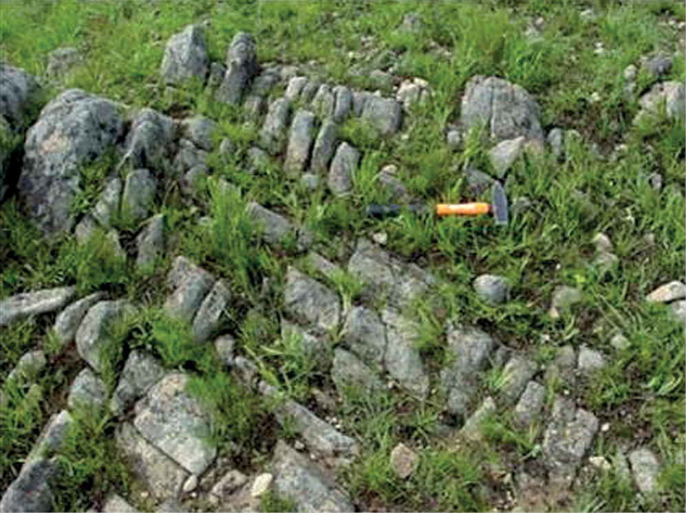 Метрические неоднородности были исследованы в полевых условиях на 20 обнажениях коренных пород, 14 из которых признаны кондиционными (фиг. 5).
