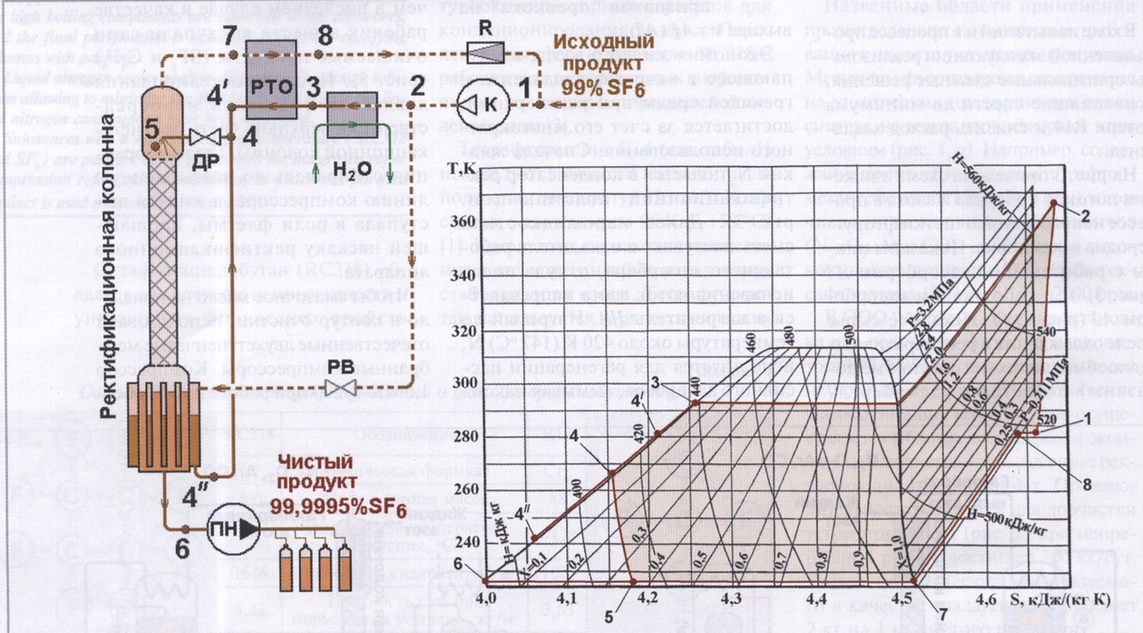 Substances with a high condensing temperature ( RC318 and SF6) are purified at the plants with the integrated vapor compression refrigeration machines, in which the purified product is used as a working medium.