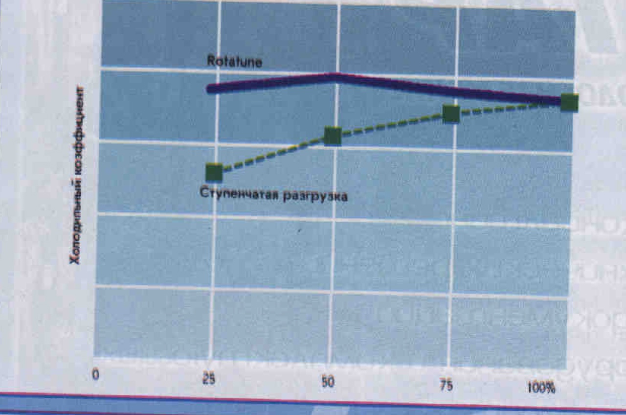 Хотя поршневые компрессоры York Refrigeration с традиционным ступенчатым регулированием производительности являются в данный момент законодателями индустриального стандарта эффективности при частичных нагрузках, серия «Rotatune» превосходит их по энергосбережению.