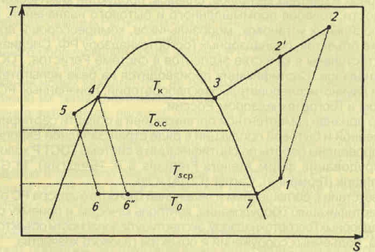2. Rice. 1. The cycle of a single-stage vapor-compression refrigeration machine in the T, s-diagram: Tp, Tk are the temperatures of boiling and condensation, respectively