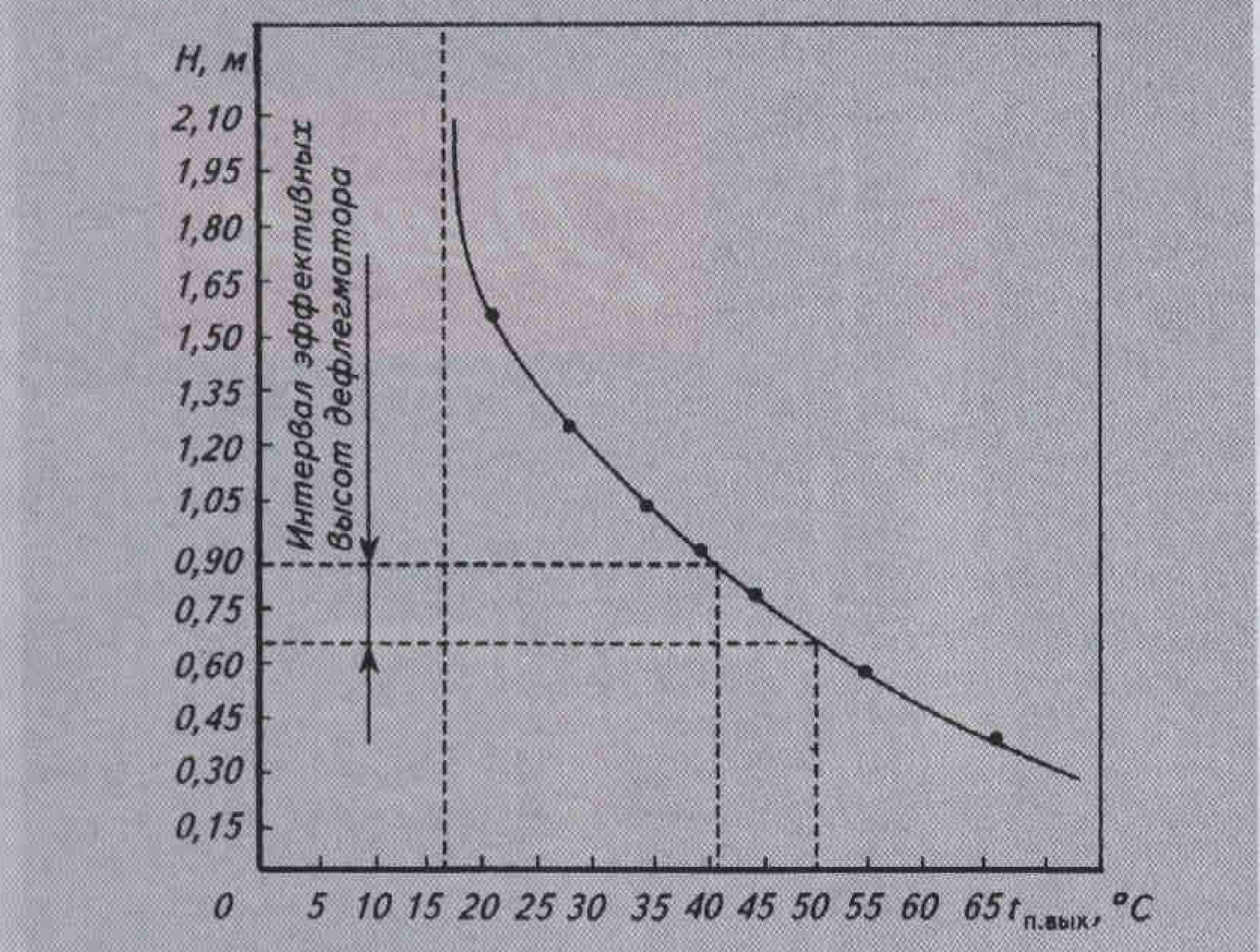 Вертикаль, к которой асимптотически приближается кривая t п.вых= f(H ), определи ла режим получения возможно низкой температуры выходящего пара (вне зависимости от высоты ai тарата для заданных условий работы). Как видно из графика, степень термодинамического совершенства дефлегматора, равная 0,65...0,7, соответствует температуре выходящего пара 40...50 °C, что, в свою очередь, определяет высоту дефлегматора Н - 0,6...0,9 м.