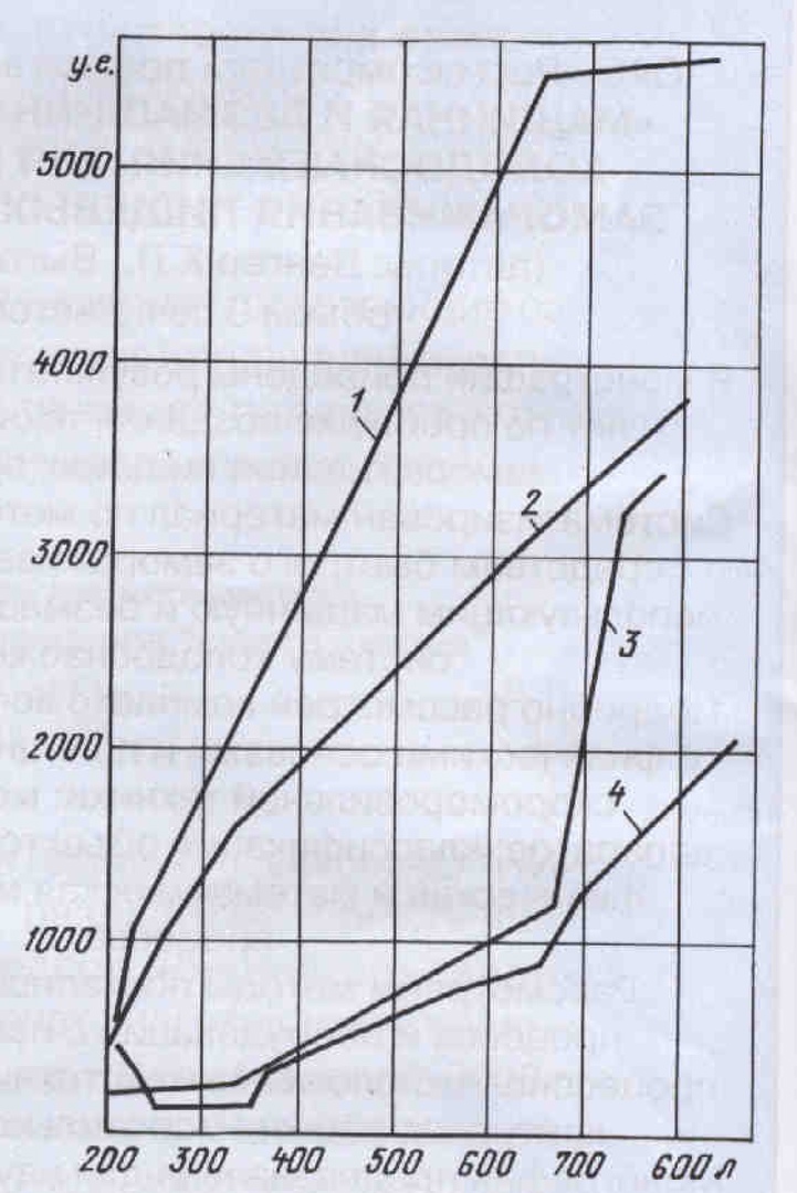 Многообразие марок и декоративных решений определило широкий разрыв между нижним и верхним пределами цен холодильников одинаковой емкости (рис. 1). Нижний предел цены продиктован условиями выгодности производства и коммерции.