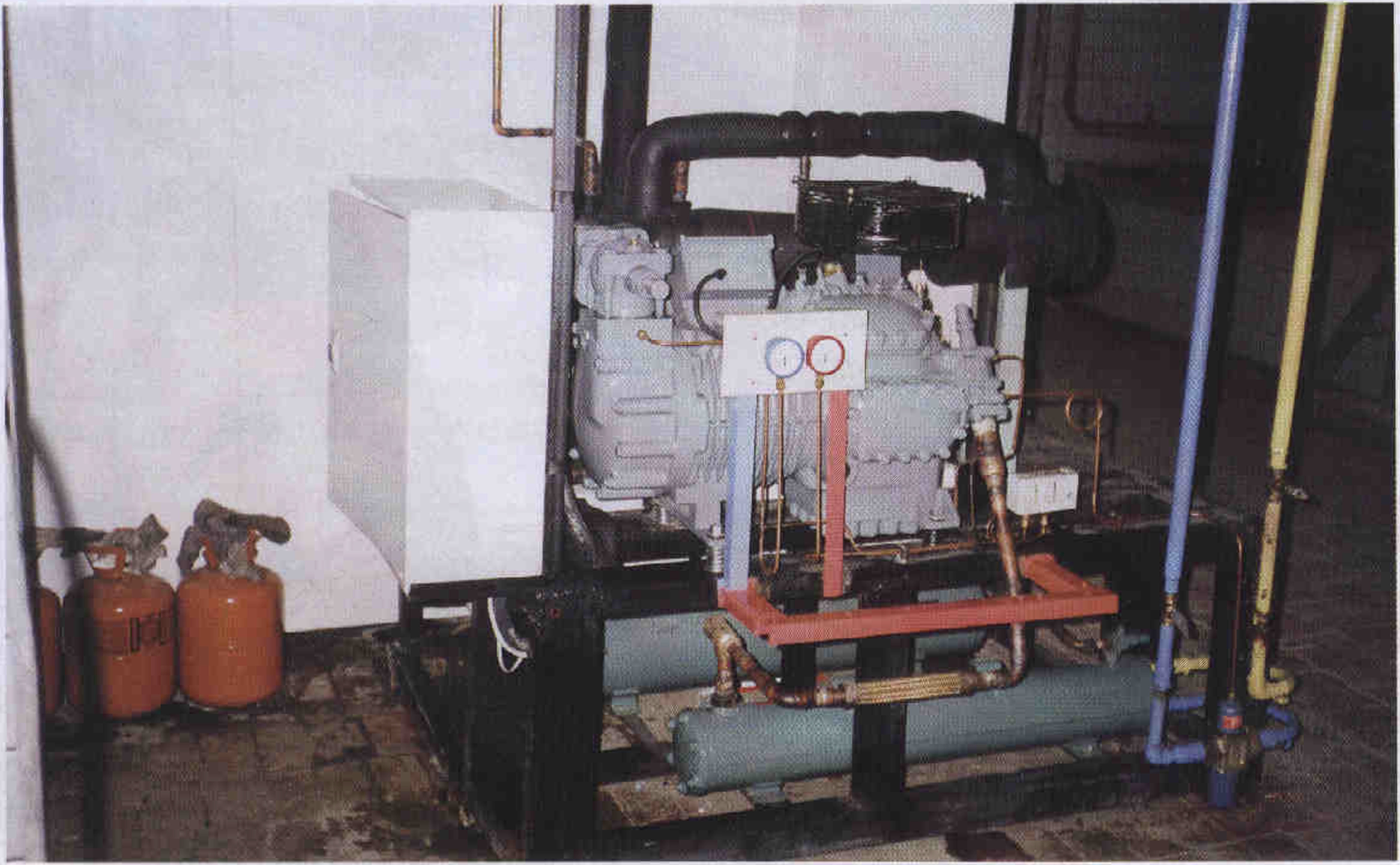 Компрессорно-конденсаторный агрегат, работающий на R22 и R404A, смонтирован на единой раме.
