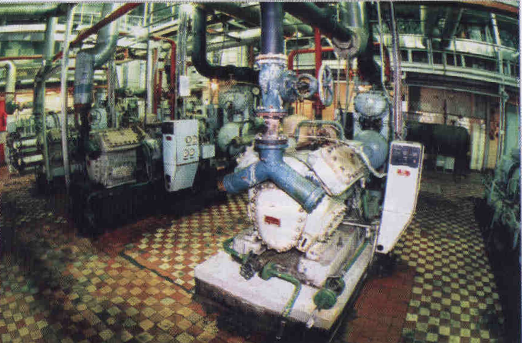 Для выполнения принятых решений летом 2002 г., не останавливая работу АХУ, пришлось прежде всего ограничить холодоснабжение технологического цеха. Незадействованные камеры были отключены от подачи холода. В срочном порядке для замены изношенных были приобретены поршневые компрессоры марки 21А 110-7-0, которые немедленно ввели в эксплуатацию (рис. 2).