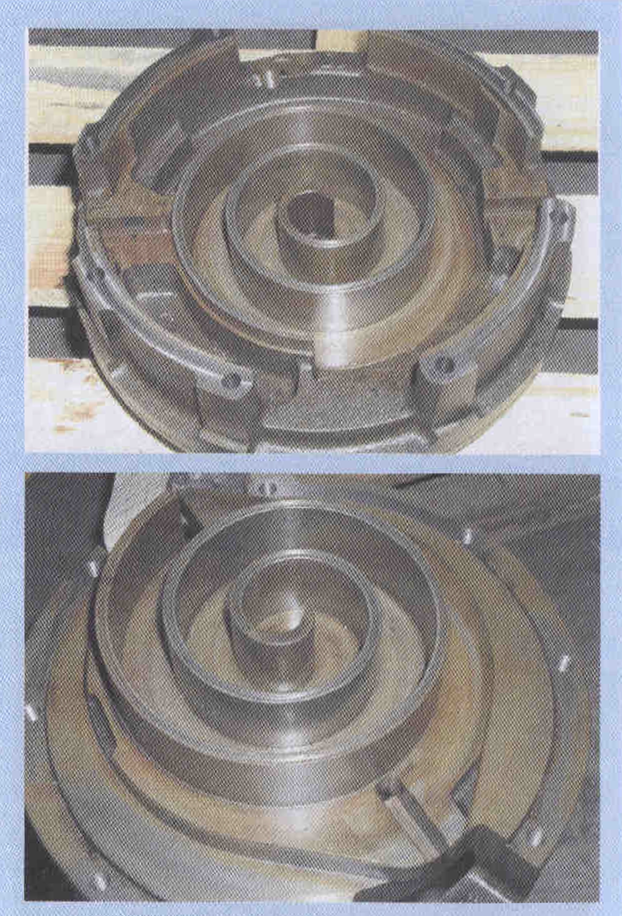 Наличие загрязнений в системе приводит к отклонению от оптимальных рабочих параметров компрессора и способствует неустойчивой работе подвижной спирали. При работе под вакуумом может произойти полное разрушение ее упорного подшипника, как это показано на рис. 3. Дня предупреждения такого рода повреждений необходимо: