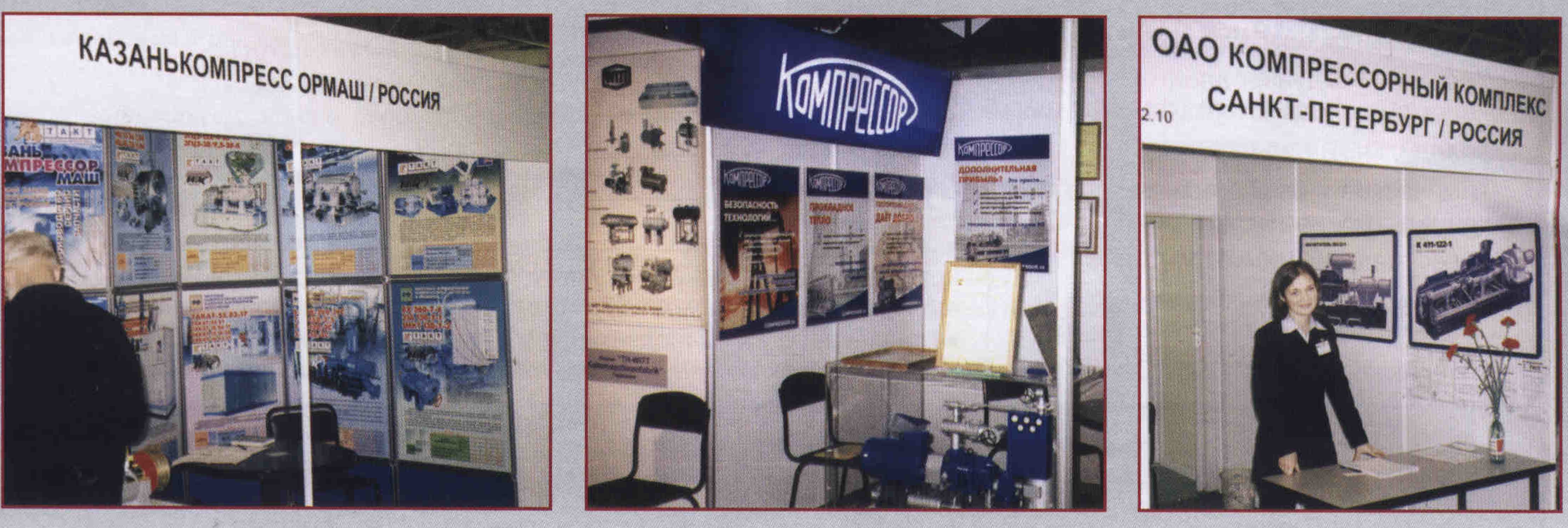 В секторе компрессорного оборудования можно было увидеть такие ведущие компрессоростроительные фирмы России, как Дальневосточный завод энергетического машиностроения (Хабаровск), ОАО «Компрессор», Невский завод, завод «Арсенал» и завод «Компрессорный комплекс» (Санкт-Петербург), «Пензкомпрессормаш» (Пенза), Челябинский компрессорный завод и др.