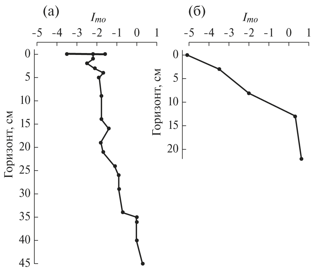 Рис. 2. График изменения показателя трансформации осадка Iто в илах: (а) бухта Никольская Кандалакшского залива Белого моря; (б) – бухта Моржовая, море Лаптевых [4].