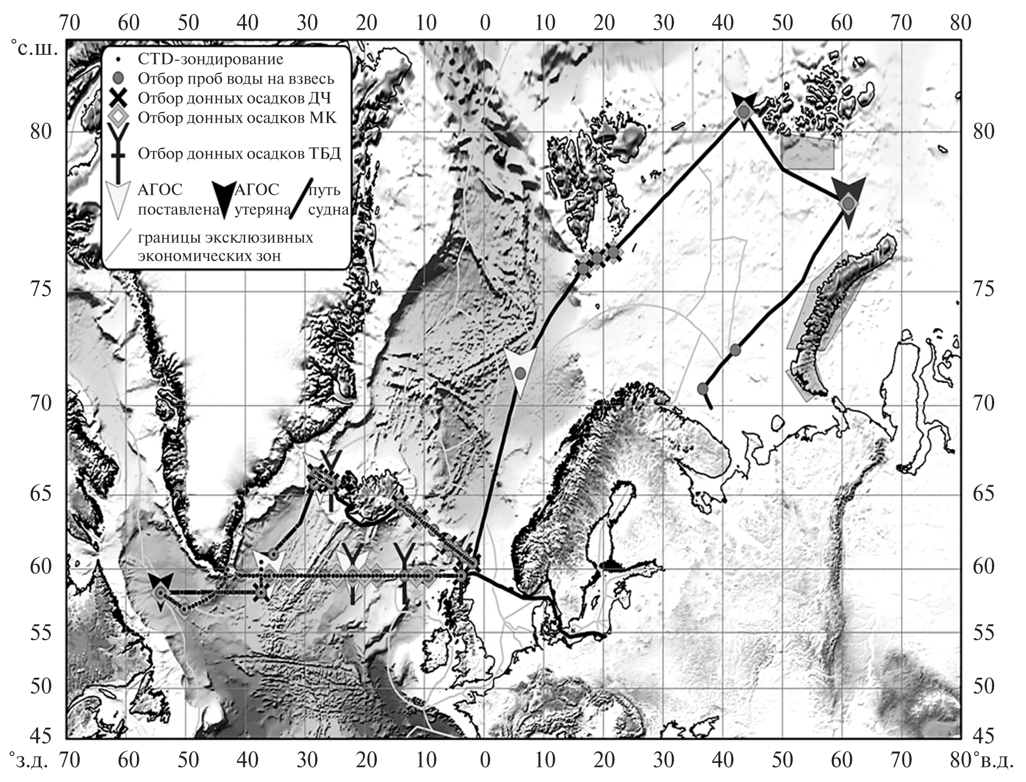 Геологическая часть экспедиции была направлена на изучение седиментосистемы Северной Атлантики и Арктики, включая: