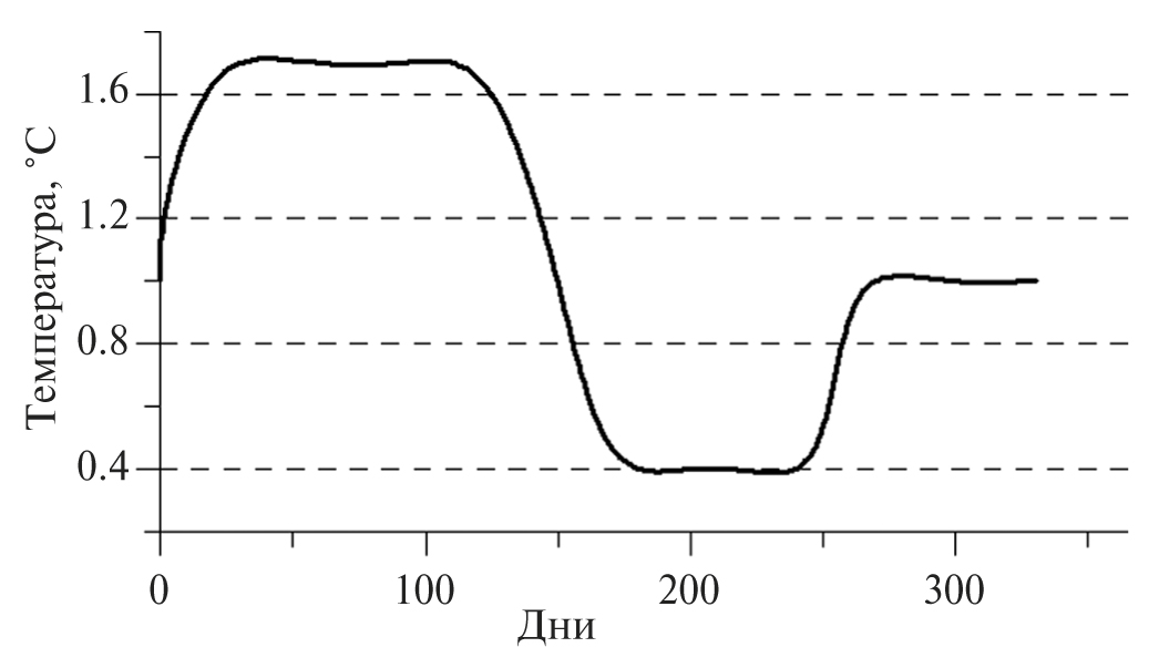 - переходный (ноябрь 2006 г., дни 0–30) с начальной температурой 1°C и последующим ее ростом в течение периода;