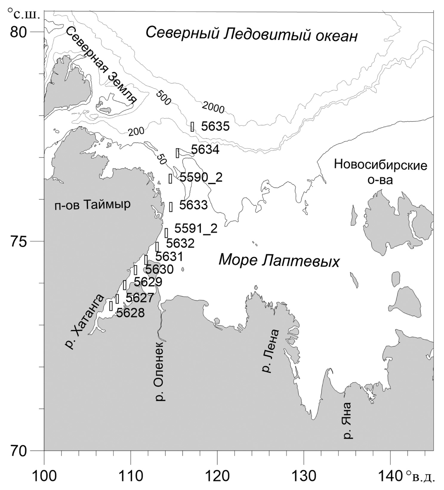 Среди сибирских арктических морей море Лаптевых относится к числу относительно хорошо изученных. Это касается, прежде всего, восточной области бассейна, находящейся под воздействием стока крупнейшей сибирской реки Лены. Интенсивные исследования 1990-х–начала 2000-х годов были в основном ориентированы на изучение динамики ледового режима, воздействия масштабного речного стока на гидрологическую структуру, процессов осадконакопления, гидро- и геохимии, анализ современных и палеоклиматических процессов [3, 4]. Особенности структуры и биологической продуктивности пелагических экосистем, ключевые связи среда–биота, сезонные и климатические процессы в экосистемах даже в восточной части моря Лаптевых остаются недостаточно изученными.