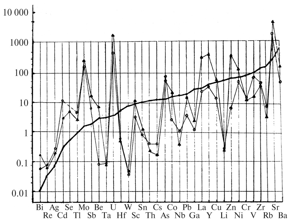 Следовательно, такое давно известное и распространенное в осадочных комплексах явление, как металлоносные “рыбные кладбища” [18], крупнейшими из которых являются ураново-редкометальные месторождения Мангышлака и Калмыкии, обусловлено специфическими условиями осадочного процесса в биологически продуктивных окраинных частях древних и современных бассейнов.
