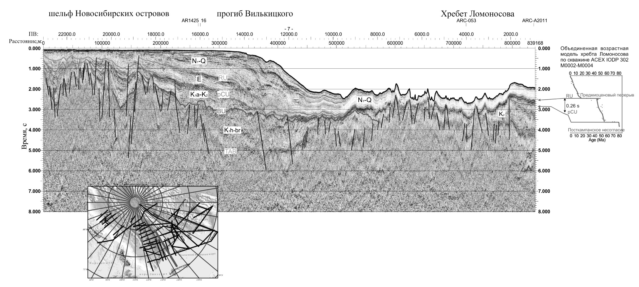 Важным выводом является непрерывное прослеживание с Евразийского шельфа на хребет Ломоносова и поднятие Менделеева меловых-кайнозойских осадочных комплексов.