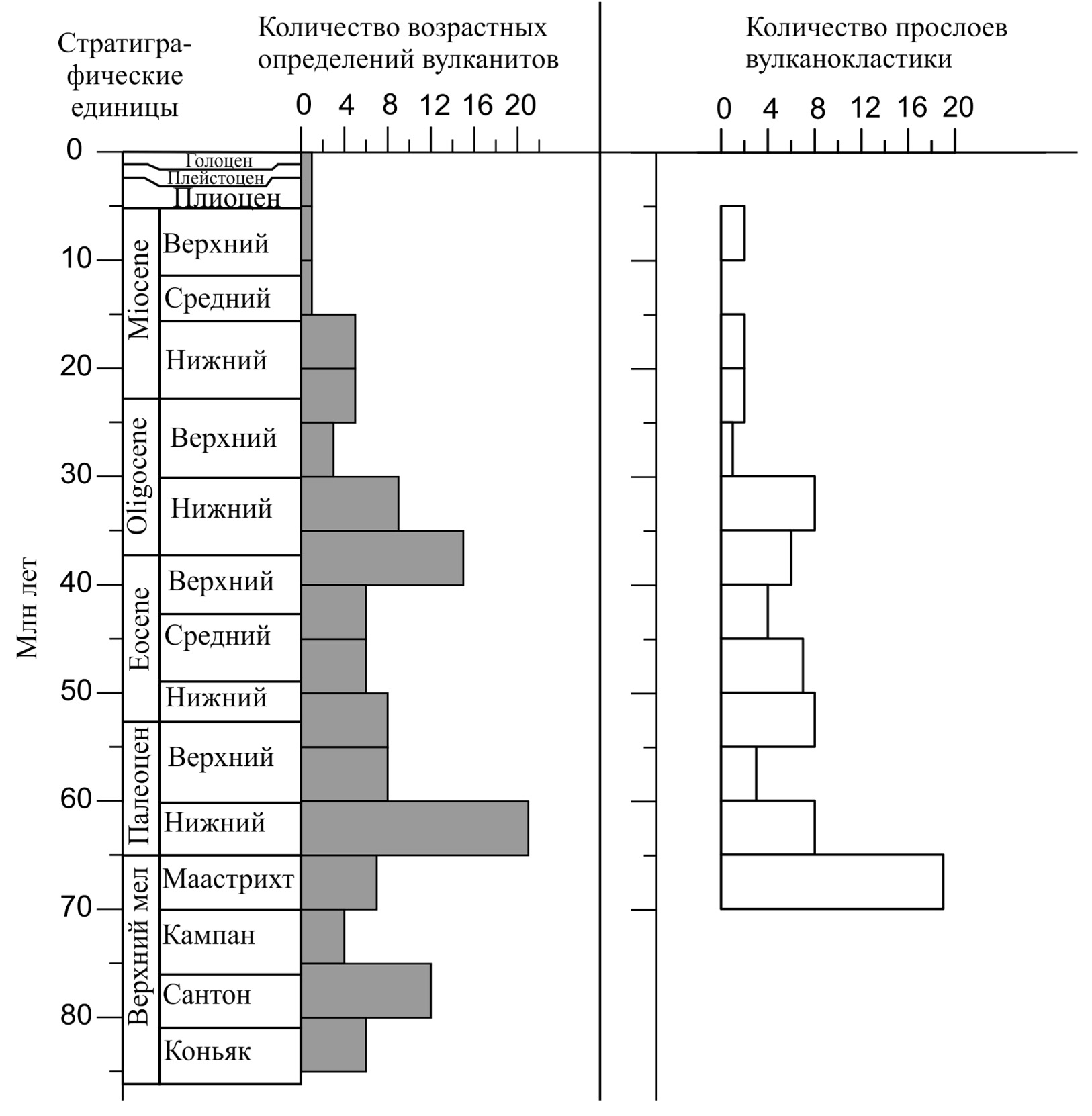Всего опубликовано свыше 200 результатов химических анализов, и их основная часть была использована в статье. Также приводится оценка эруптивной вулканической активности Китового хребта на основе подсчетов прослоев пепла в кернах глубоководных скважин [2, 27–32, 41–44, 54–59], возраст слоев рассчитывался по скорости накопления осадков с использованием биостратиграфических данных, геомагнитных маркеров и по возрасту вулканитов хребта, который определялся К–Ar и Ar–Ar методами.