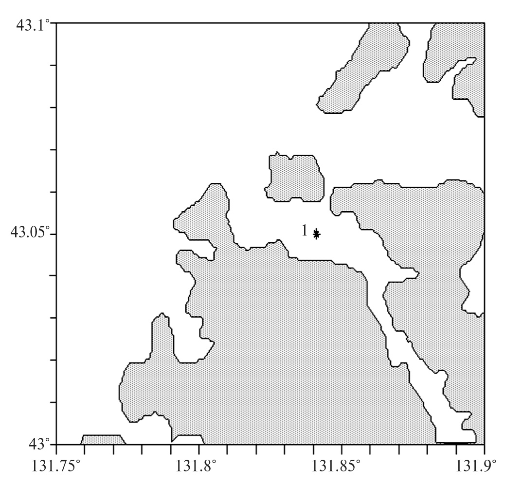Пробы морского льда извлекались из припайного льда в одной и той же точке, координаты которой приведены на рис. 1. Была выбрана полузакрытая от ветров бухта Новик залива Петра Великого во время устойчивого формирования толщины льда, обеспечивающая безопасное передвижение по льду, примерно в одни и те же календарные сроки. Выбор места наблюдения исключал ряд неконтролируемых факторов, присущих открытой части залива. После первых же экспериментов стало понятно, что тонкий однолетний лед толщиной порядка 40–55 см вследствие значительной динамики условий его формирования существенно отличается от толстых многолетних льдов полярных районов, которым посвящено большинство исследований.
