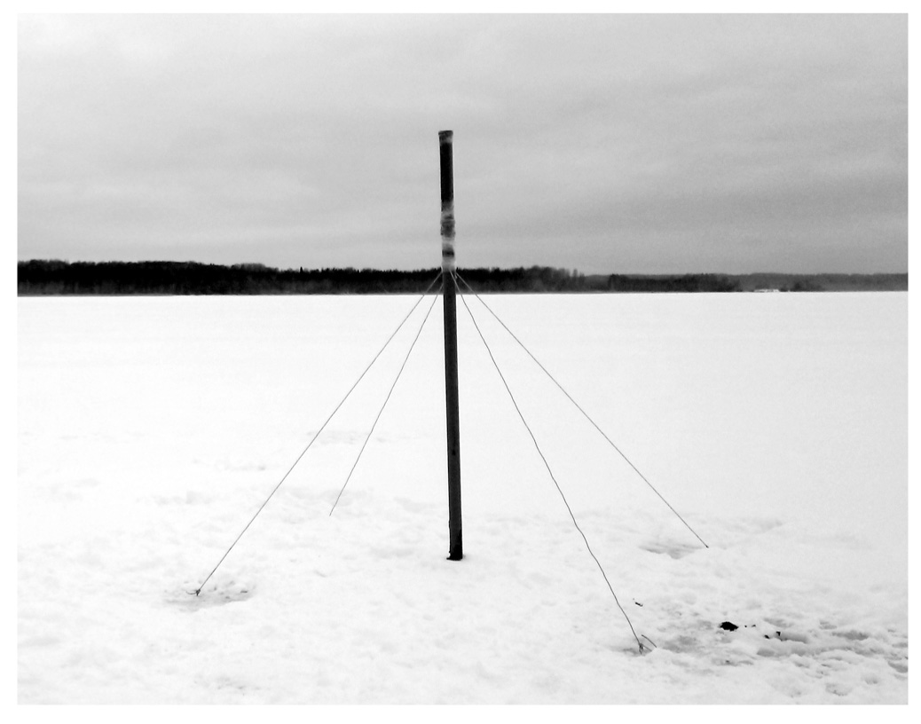 Рис. 3. Замораживание керна в вертикальном положении на льду озера Селигер. Фото автора.