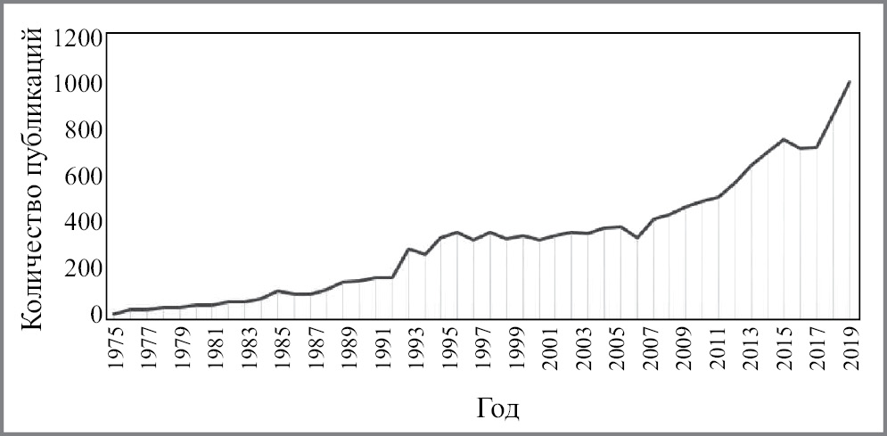 Широкое распространение в клинической практике PROM получил с 1975 г., когда в Швеции оценка качества жизни пациентов была утверждена на национальном уровне в рамках специализированных регистров заболеваний [3]. В последние годы значительно возросло количество научных публикаций, анализирующих данные PROM (рис. 1).