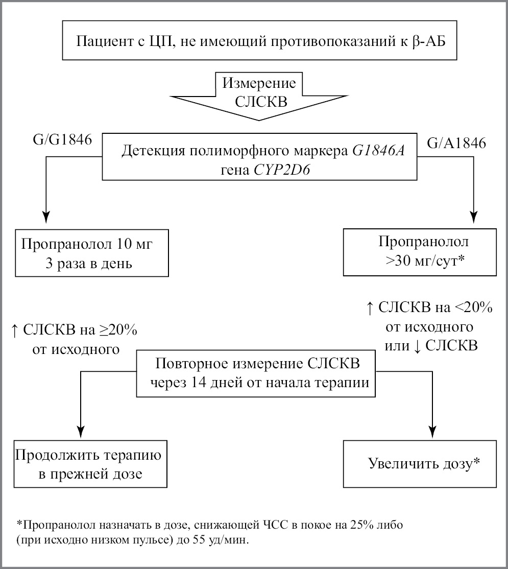 Рис. 2. Алгоритм персонализации лечения пациентов с ЦП неселективными β-АБ.