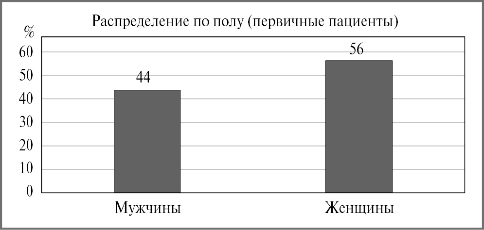 Рис. 1. Распределение пациентов когорты 1 по полу.