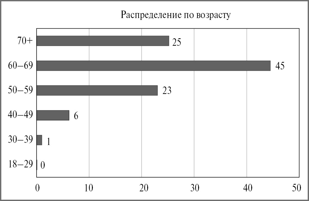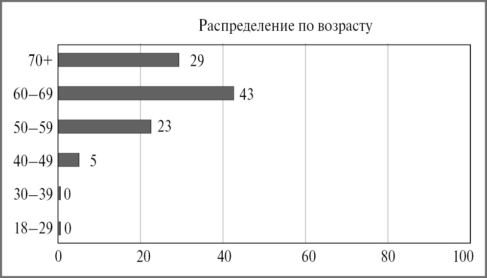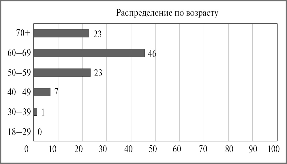 Рис. 4. Распределение по возрасту пациентов когорты 1 на дату включения в исследование (%).