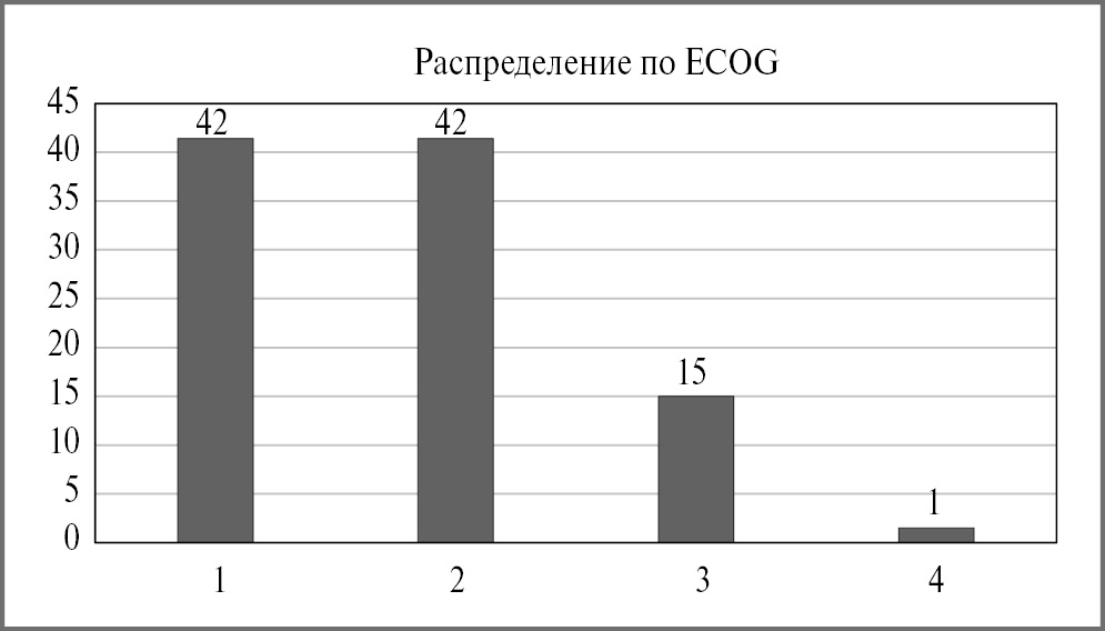 Рис. 6. Распределение пациентов когорты 1 по шкале ECOG в баллах на момент включения в исследование (%).
