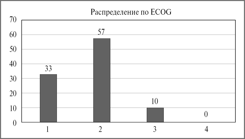 Рис. 7. Распределение пациентов когорты 2 по шкале ECOG в баллах на момент включения в исследование (%).