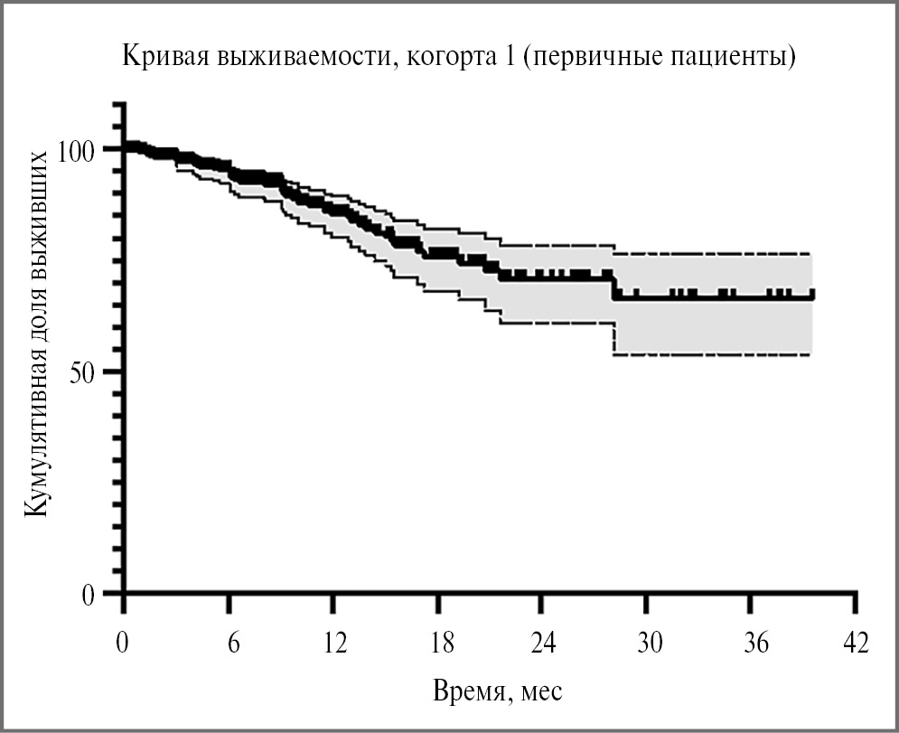 Рис. 11. Показатели выживаемости пациентов когорты 1 (первичные пациенты).
