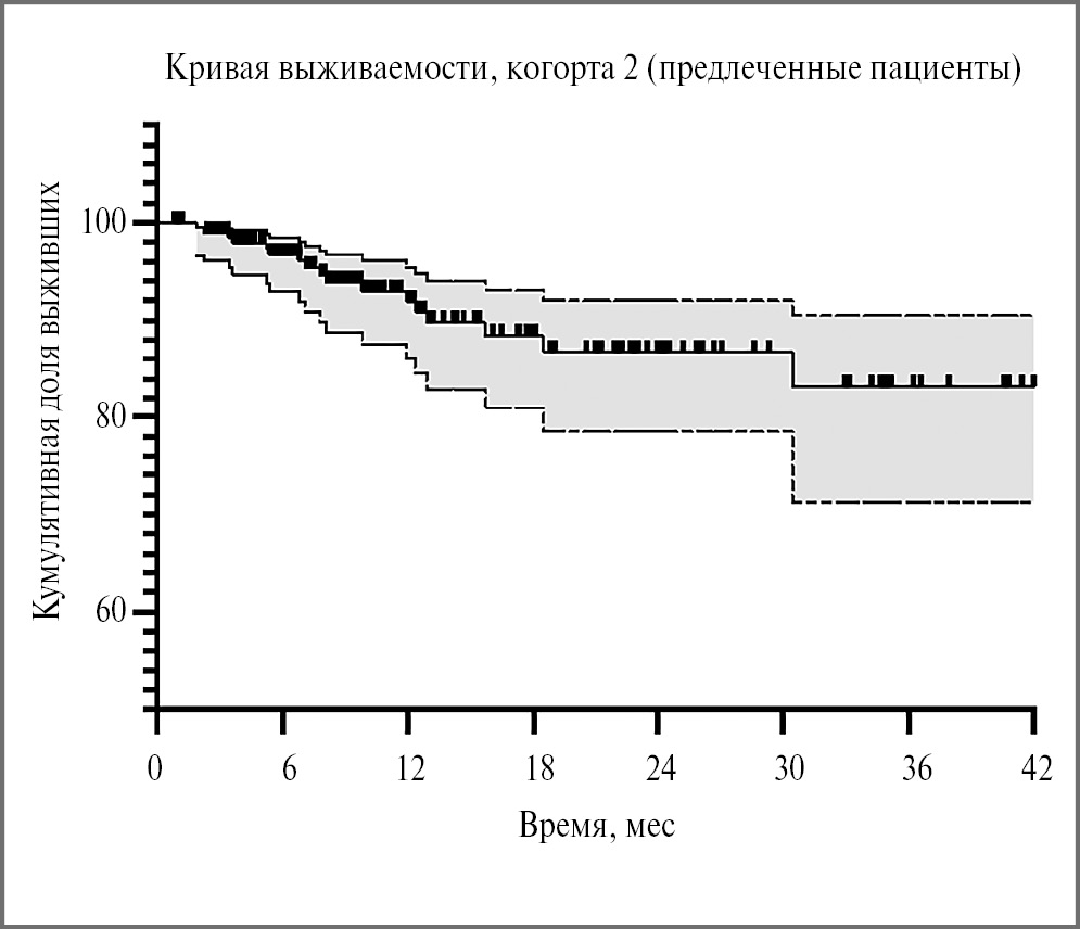 Рис. 12. Показатели выживаемости пациентов когорты 2 (предлеченные пациенты).