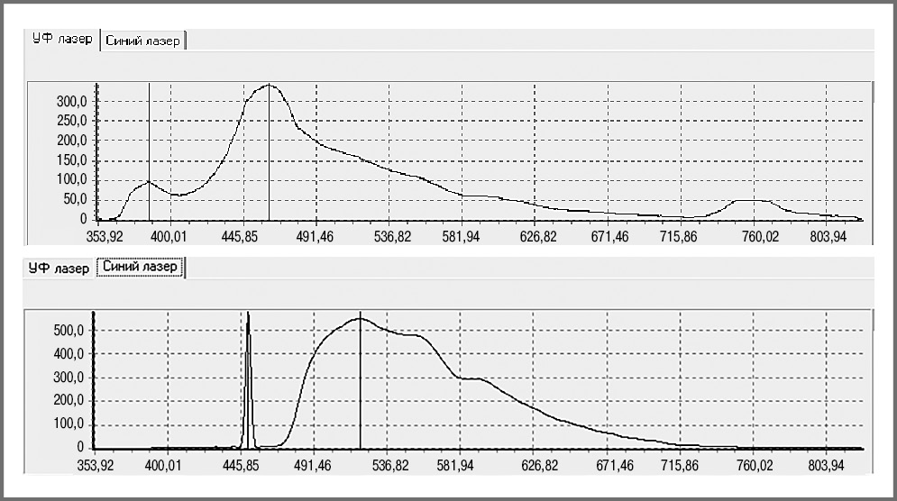Примечание. УФ – ультрафиолетовое излучение, Син – синий лазер. |