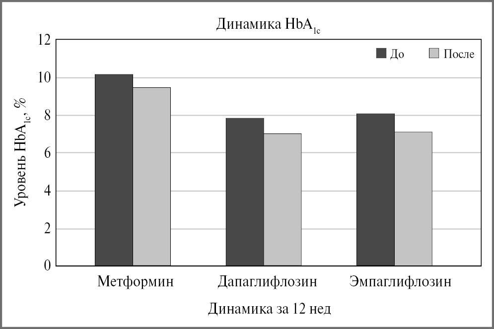 Рис. 3. Динамика HbA1c в группах исследования.