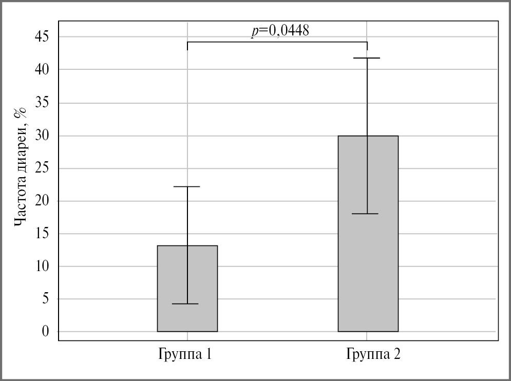 Рис. 3. Частота регистрации диареи в группах сравнения.