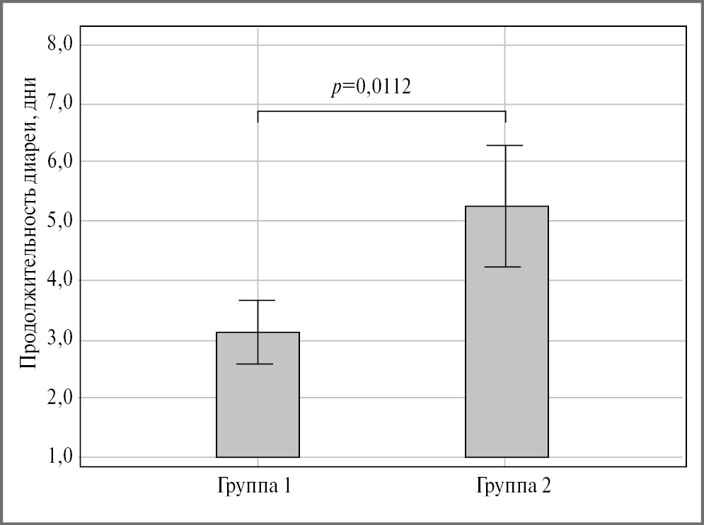 Рис. 4. Продолжительность диареи в группах сравнения.