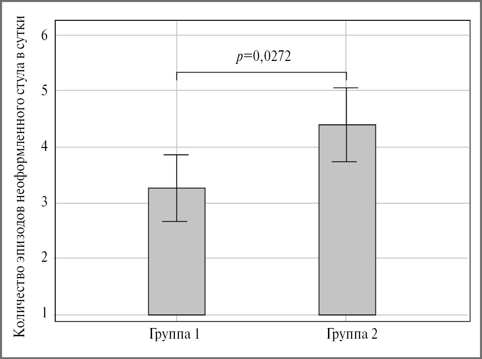 Рис. 5. Количество эпизодов неоформленного стула у пациентов с зарегистрированной диареей в группах сравнения.