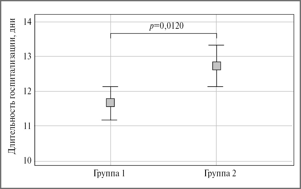 Рис. 6. Длительность госпитализации пациентов в группах сравнения.