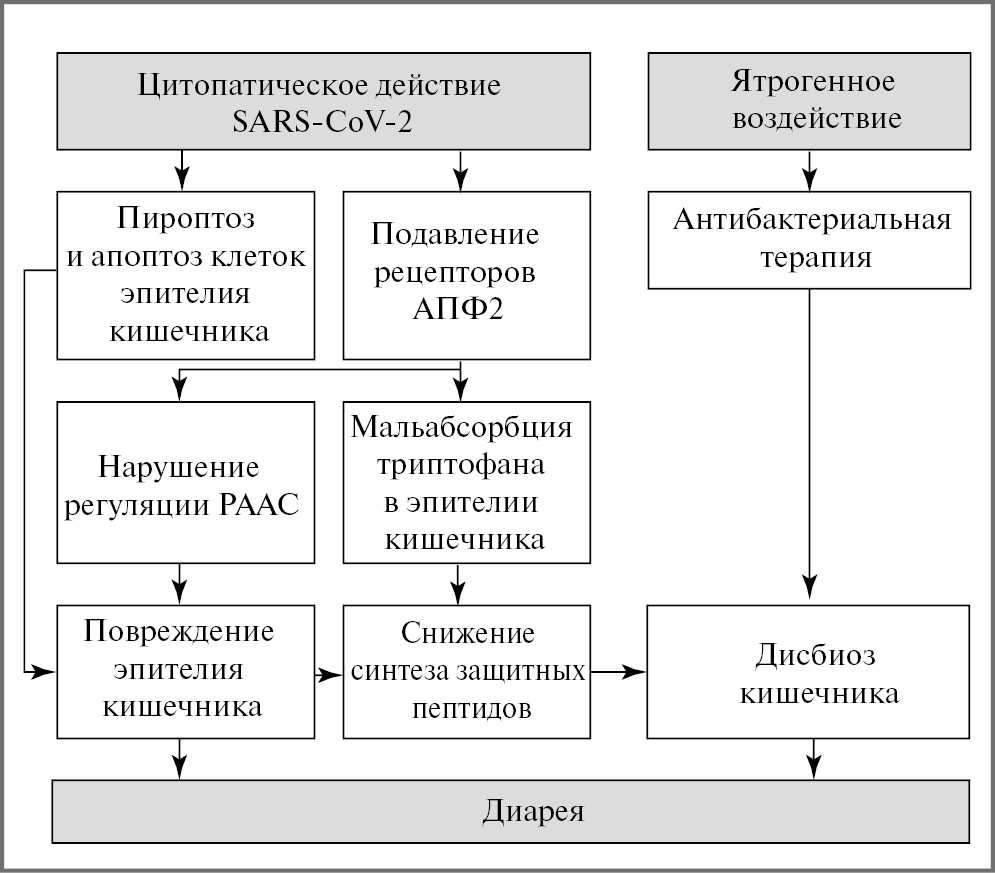 Рис. 7. Механизмы генеза диареи у пациентов с новой коронавирусной инфекцией COVID-19.