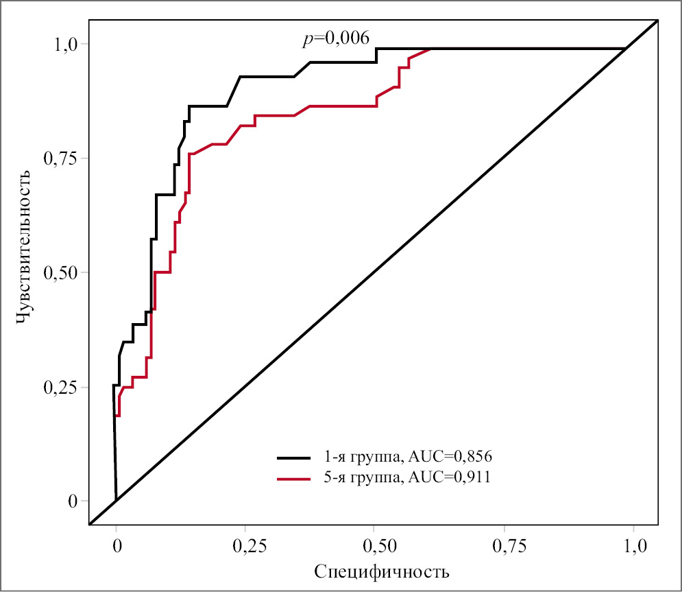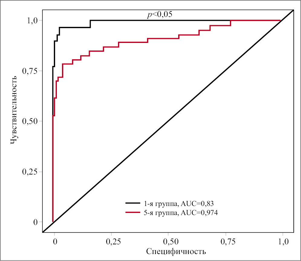 Рис. 2. Эффективность метода определения ХрА по 1 и 5-й группам