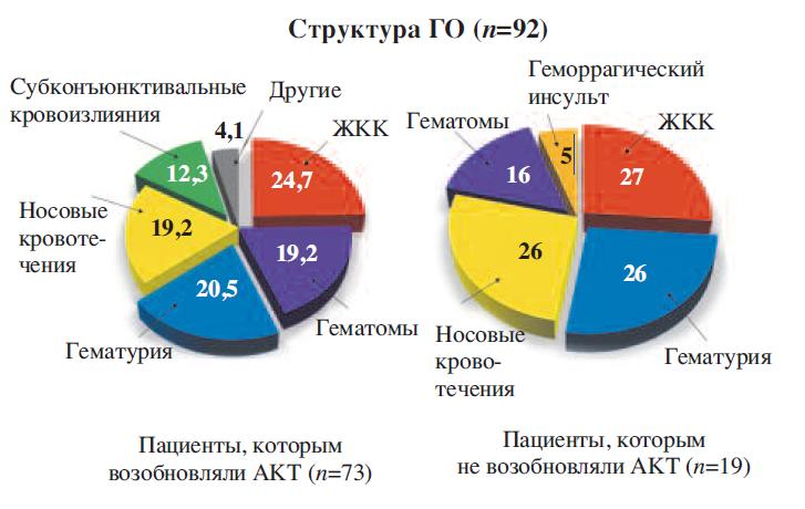 Частота возобновления АКТ после развития Б/КЗ кровотечения составляет в среднем около 80%, а увеличение частоты возобновления АКТ в последние годы обосновано появлением в реальной клинической практике ПОАК.