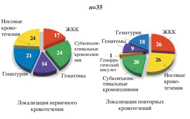 Оценка структуры ГО у больных, переживших повторное кровотечение, показала, что в подавляющем большинстве случаев (83%) рецидив кровотечения той же локализации, что и первое геморрагическое событие. Тем не менее у 17% пациентов развилось кровотечение другой локализации, нежели первичное событие.