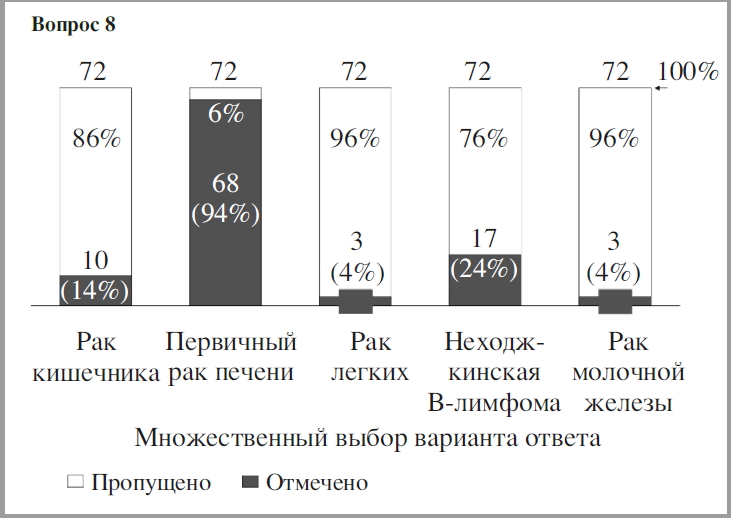 Рис. 9. Ответы на вопрос «Укажите злокачественные заболевания, связанные с хронической ВГС-инфекцией».