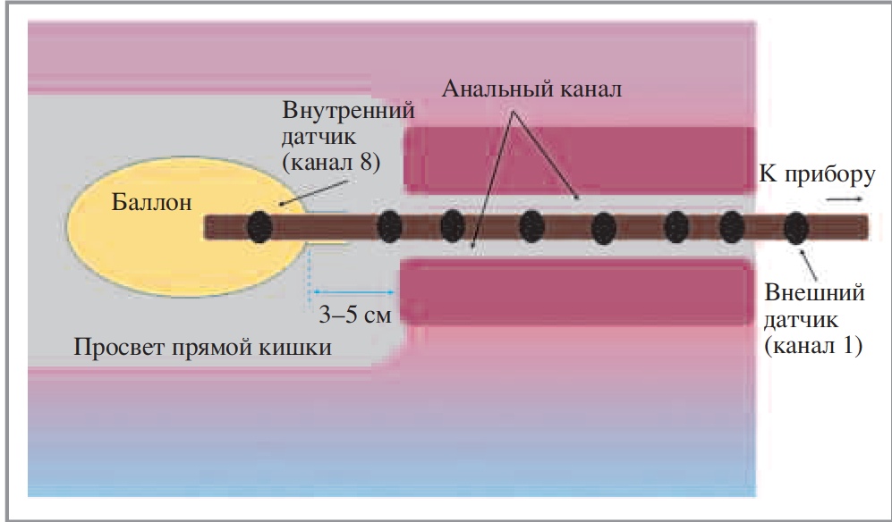 • В идеале манометрические датчики должны регистрировать давление по окружности анального канала, а не только по его длине (С1).