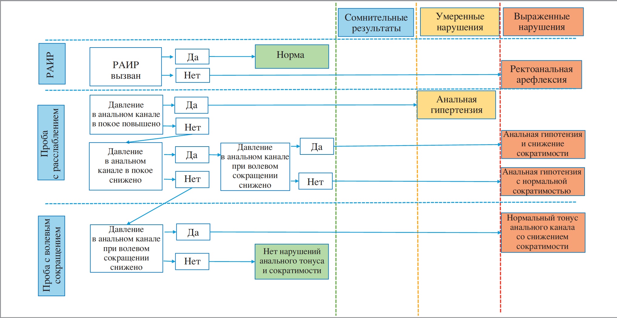 4. Figure: 3. London classification, part 1 (violation of RAIR) and part 2 (violation of tone and contractility of the anus muscles).