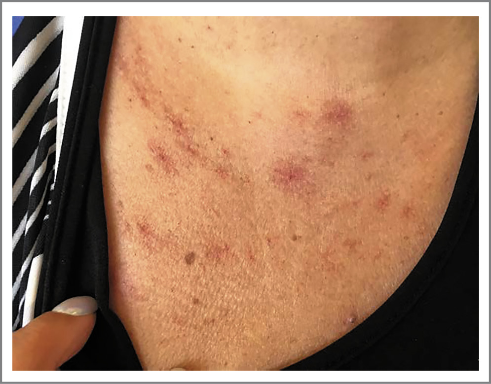 Рис. 1. Телеангиоэктазии на передней грудной стенке. / Fig. 1. Telangiectasias on the anterior chest wall.